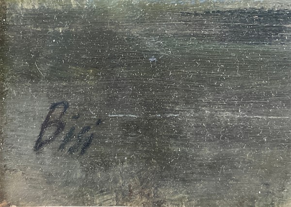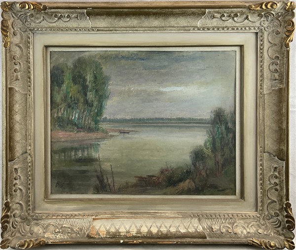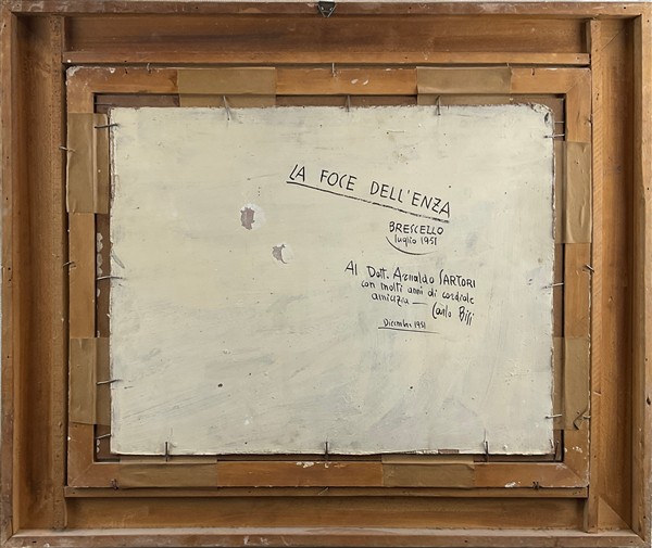 Carlo Bisi "La foce dell'Enza" Brescello, luglio 1951 olio su cartone (cm 34x43)
