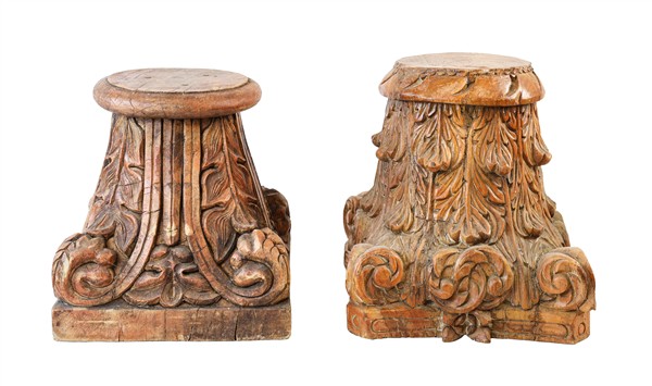 Lotto composto da una coppia di capitelli corinzi in legno intagliato, ed uno d