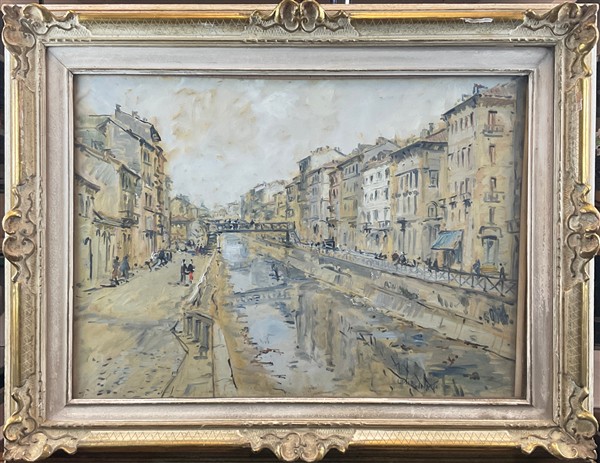 Giovanni da Busnago "Naviglio" olio su tela (cm 50x70) firmato in basso a destr