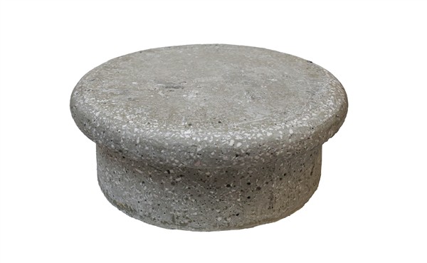 Coppia di capitelli in cemento montati a tavolino con piano in cristallo (cm 62