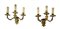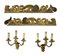 Lotto composto da coppia di fregi in legno intagliato, laccato e dorato con decoro a volute fogliacee e motivo rocaille, secolo XIX (cm max 107x19) e coppia di applique in lamierino dorato a tre luci (cm 27x26x18)(difetti)