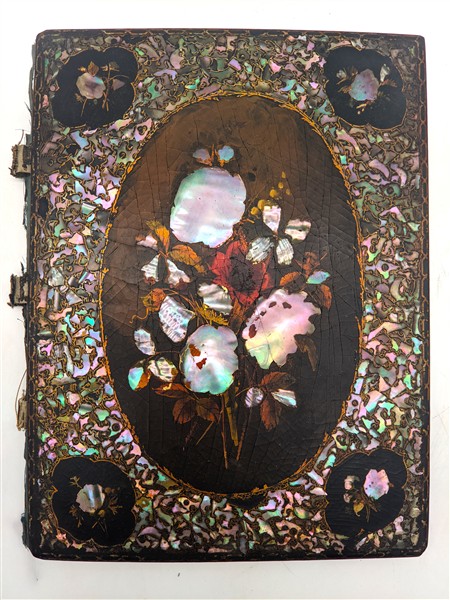 Lotto composto da un portadocumenti in papier-maché dipinto e con inserti in ma