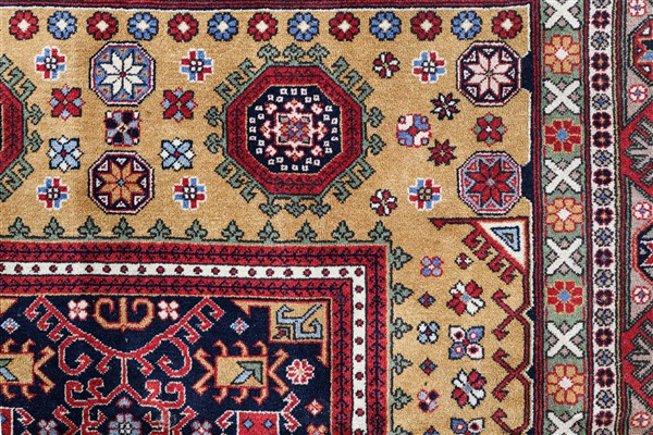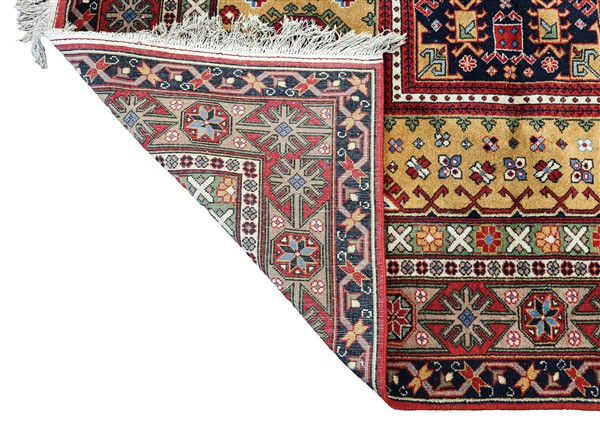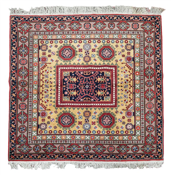 Lot 1381 | Tappeto rumeno, secolo XX decoro con medaglione rettangolare a fondo blu notte