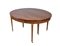 Tavolo allungabile in noce con piano ovale e gambe rastremate, capitelli e ruot