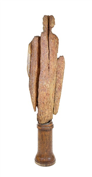 Scultore del secolo XVIII. Figura di Santo in legno intagliato e verniciato (h cm 111) poggiante su base lignea di epoca successiva (h cm 46) (difetti e mancanze)