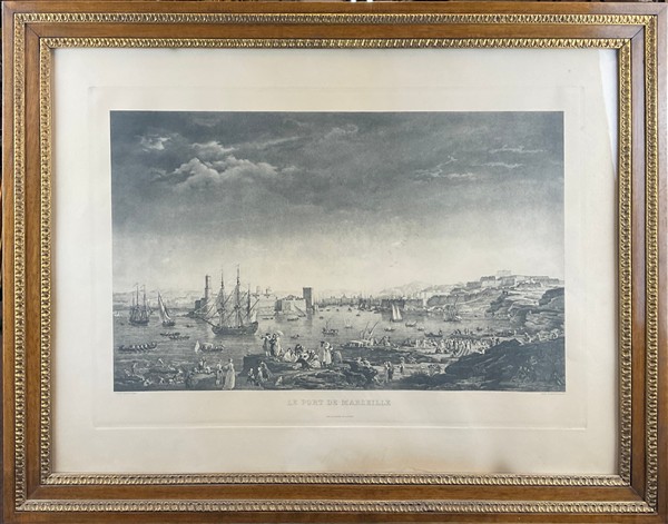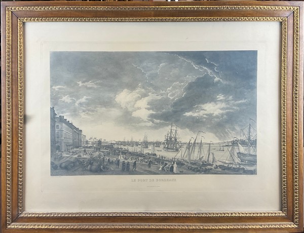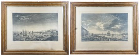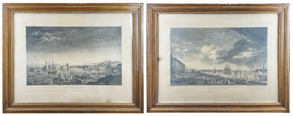Coppia di acqueforti di Abel Mignon da invenzioni di Joseph Vernet raffiguranti "Le Port de Bordeaux" e "Le Port de Marseille"