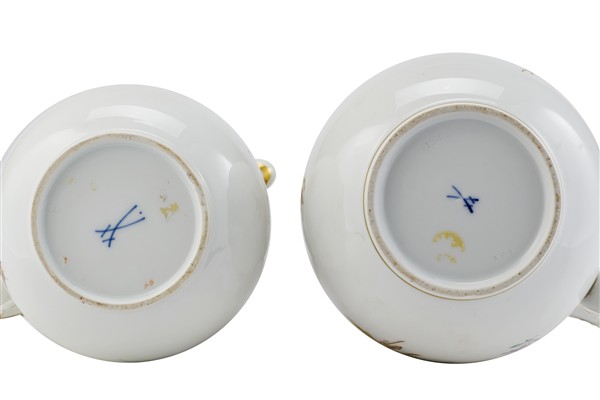 Manifattura di Meissen, secolo XIX/XX. Due caffettiere in porcellana policroma