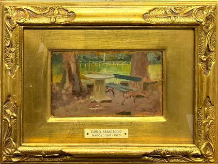 Carlo Brancaccio "Parco a Parigi" olio su cartone (cm 9x15) firmato e locato in