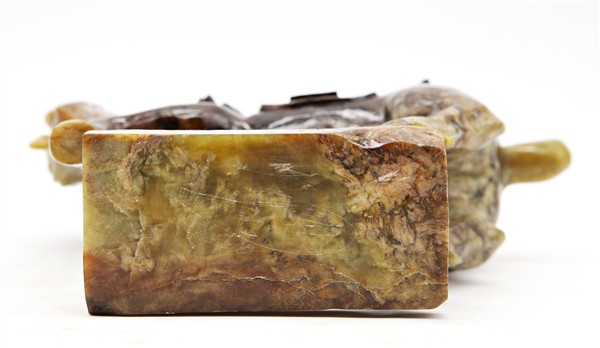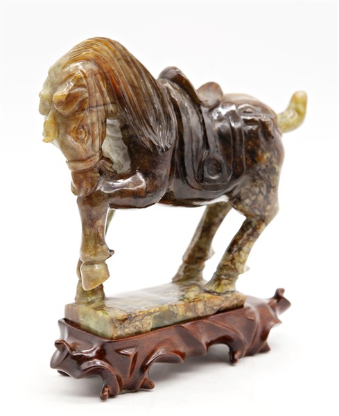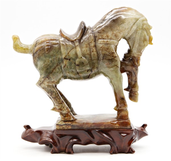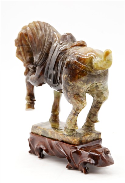 Cavallo in pietra dura verde con venature marroni