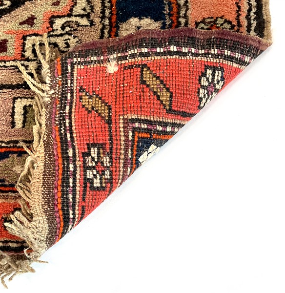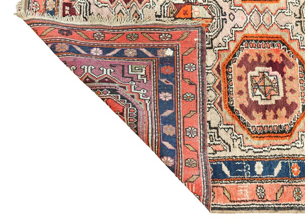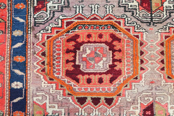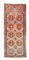 Tappeto Samarcanda, Turkestan orientale, secolo XX. Decoro con due file di Gül su campo nocciola (cm 338x149) (difetti)