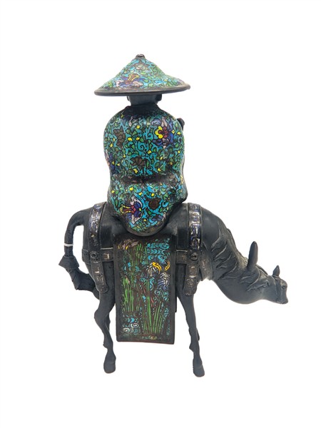 Figura di saggio che cavalca un mulo in smalto cloisonné Giappone, periodo Edo