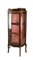 Vetrina in legni vari di forma sagomata con tre lati a vetro, fronte ad un'anta e gambe mosse, fregi e ringhierine in metallo dorato (cm 65x146x33) (difetti)