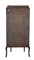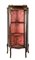Vetrina in legni vari di forma sagomata con tre lati a vetro, fronte ad un'anta