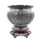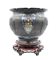 Vaso in bronzo inciso con parti decorate a smalto cloisonné su base in legno G