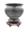Vaso in bronzo inciso con parti decorate a smalto cloisonné su base in legno