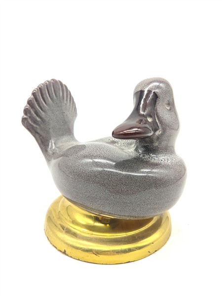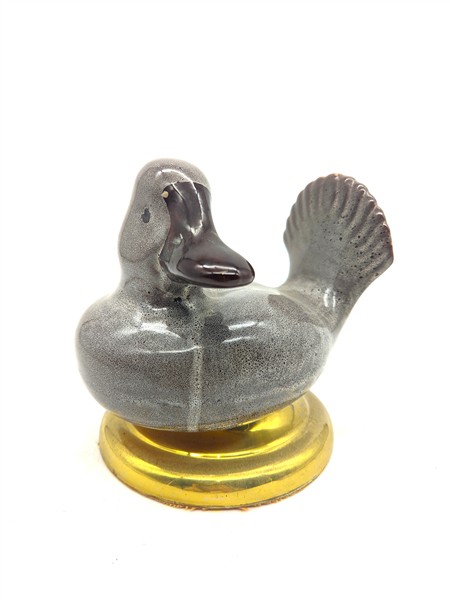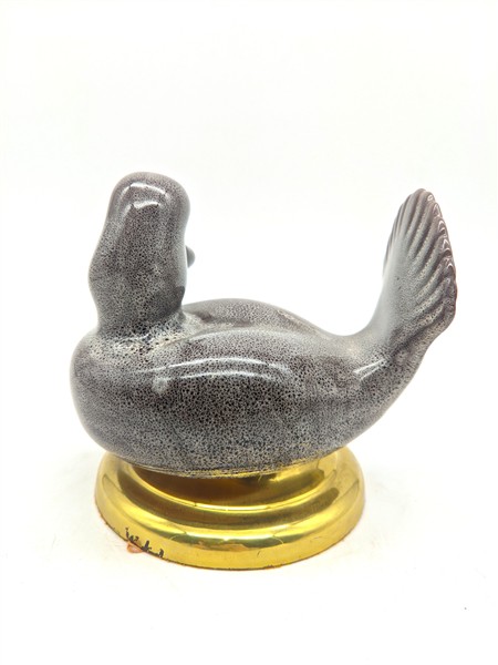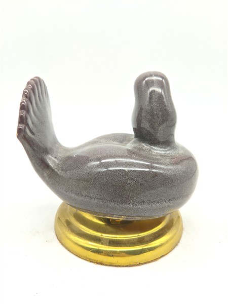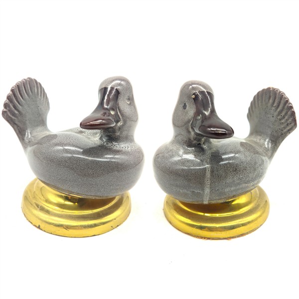 Manifattura del secolo XX. Coppia di anatre in ceramica spugnata manganese (cm 14x15) (difetti)