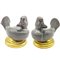 Manifattura del secolo XX. Coppia di anatre in ceramica spugnata manganese (cm 14x15) (difetti)