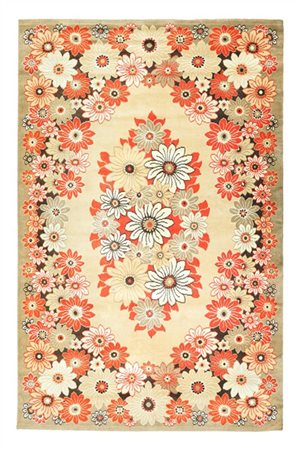 Tappeto meccanico di recente manifattura. Decoro floreale con medaglione su fon