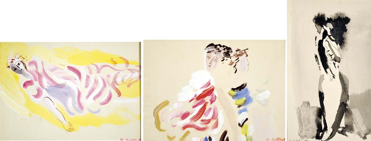 CRISTOFANETTI FRANCESCO Roma 1901 - 1951 Soggetti vari lotto di 3 tecniche miste su carta tutte firmate in basso Donna sdraiata 1934 cm. 21x31 Figure 1935 cm. 23x17 Donna in piedi 1940 cm. 26x18