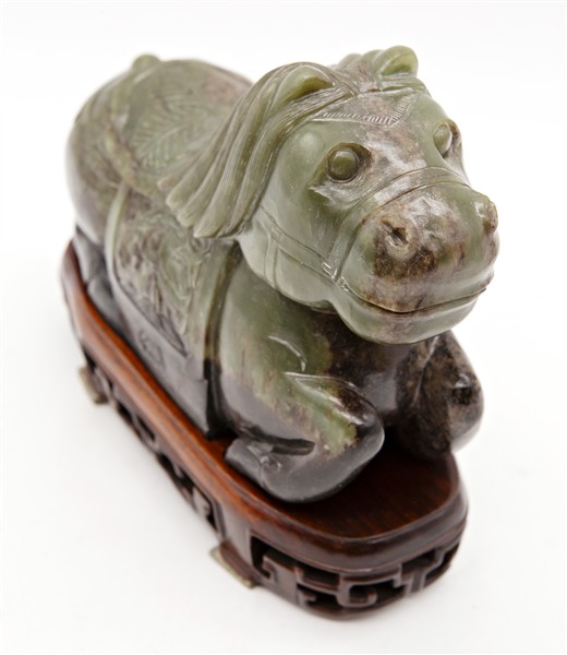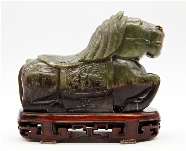 Cavallo con sella scolpito in nefrite