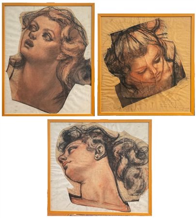 "Studi di teste" anni '80, tre tecniche miste e collage su carta di misure diverse (misura max cm 77x63) tutte firmati e datati, uno iscritto