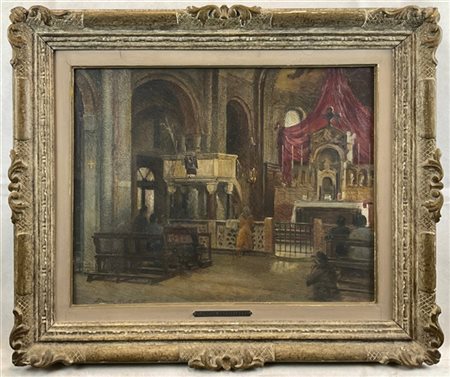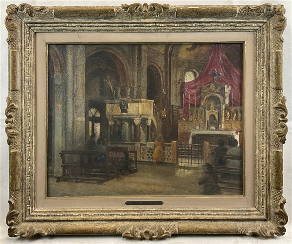 Pietro Brusa Restelletti "La chiesa di San Babila, interno" Milano, 1945 olio su