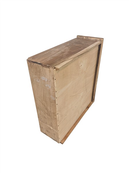 Cassettone lastronato con fronte a due cassetti e ribalta, lesene con erme in l