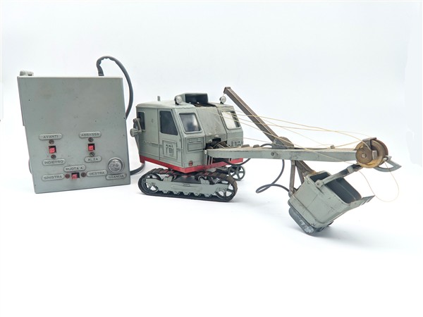 Lotto di giochi composto da una escavatrice in metallo e plastica con alimentaz