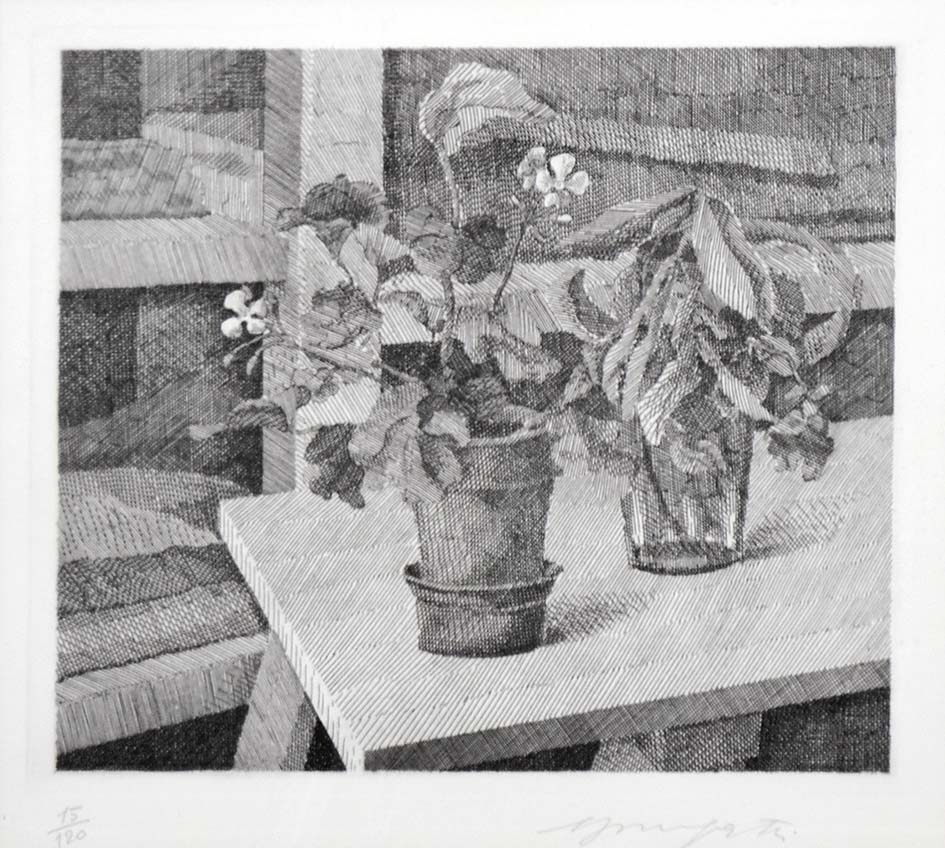 MONGATTI VAIRO Firenze 1934 Vasi di fiori acquaforte es. 15/120 25x28,5 (lastra) firma in basso a destra tiratura in basso a sinistra Graphis Arte Livorno - etichetta al retro