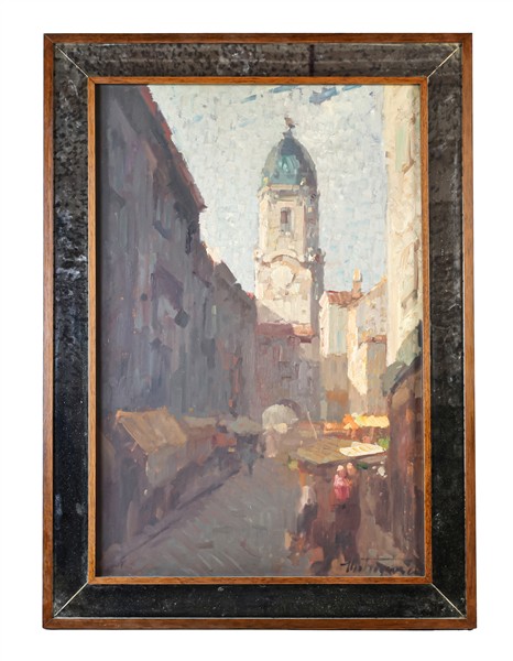 Marcello Ostrogovich "Veduta urbana" olio su compensato (cm 77x51,5) firmato in