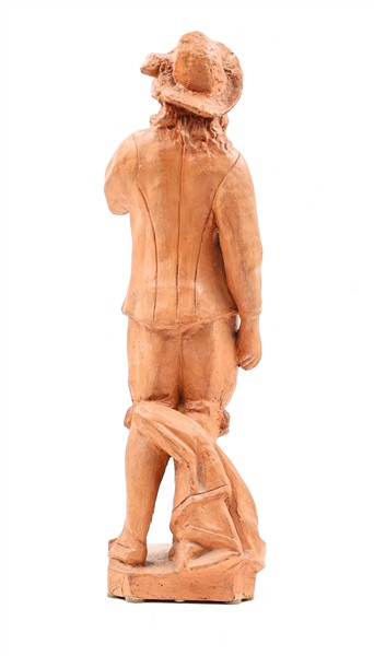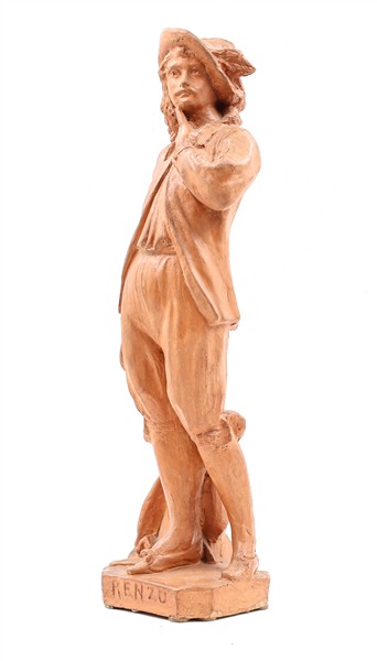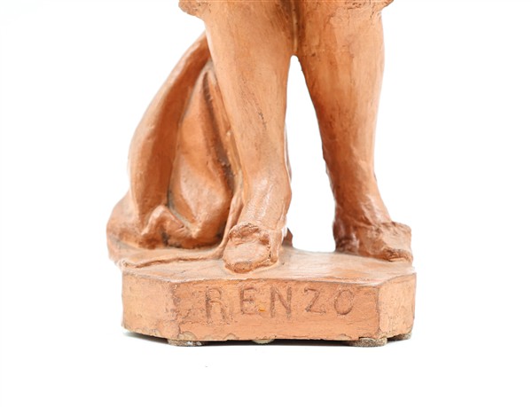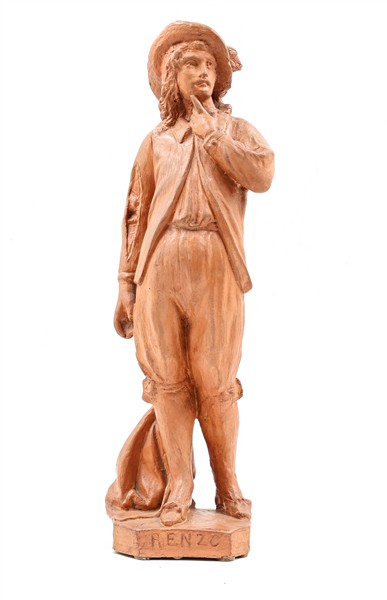 Figura di Renzo in terracotta, titolata sul fronte (h cm 46) (difetti e restauri)