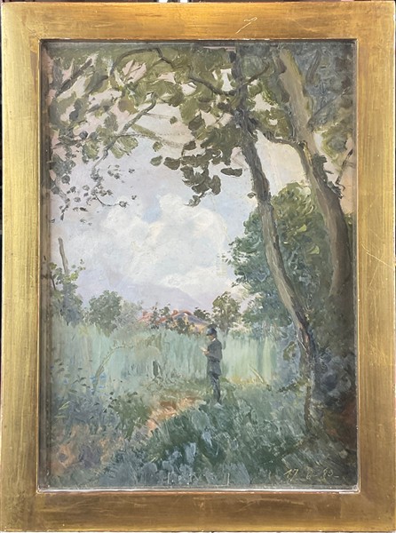 Marco Calderini (Attribuito) "En plein air" 1889 olio su cartoncino (cm 37x26,5