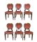 Gruppo di sei sedie in mogano con schienale sagomato, filettato e intarsiato in