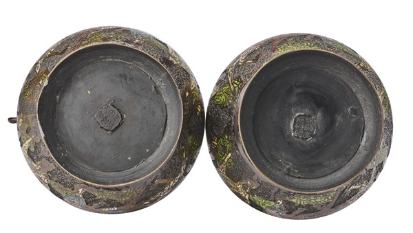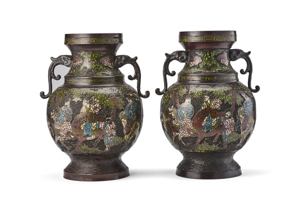 Lot 1902 | Coppia di vasi biansati in smalto cloisonnè. Cina, secolo XX (h. cm 40) (difett