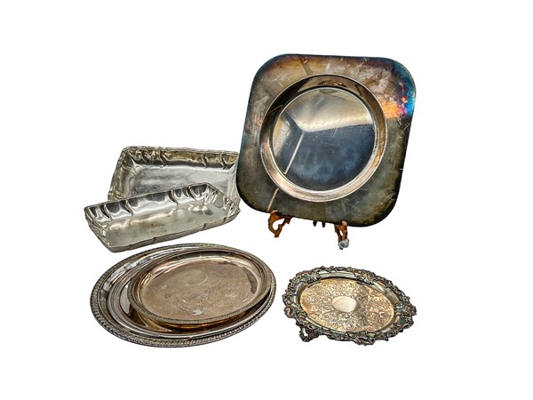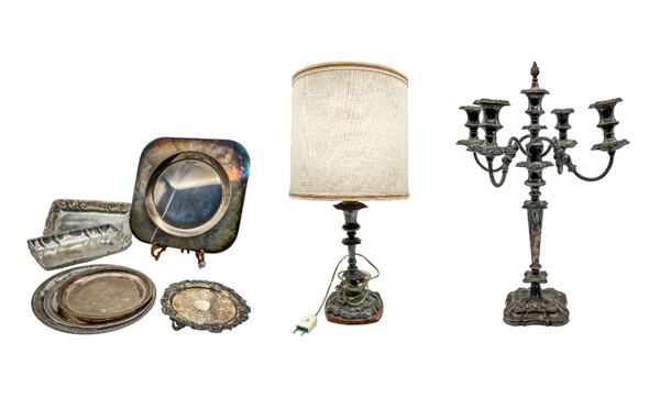 Lot 1916 | Cartone contenente numerosi oggetti in metallo argentato e altri materiali di d