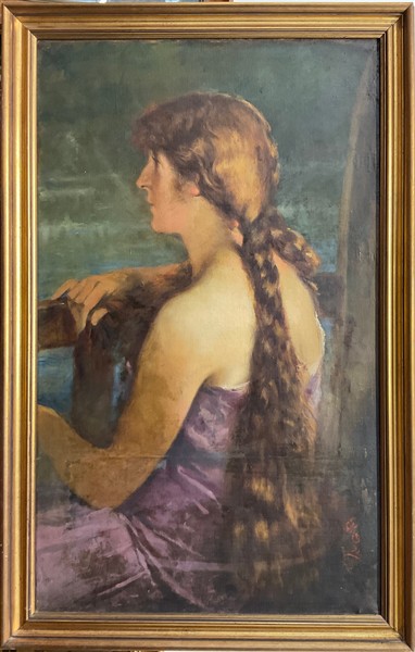 Firma indecifrata "Ragazza con treccia" 1929 olio su tela (cm 102x61) reca fir