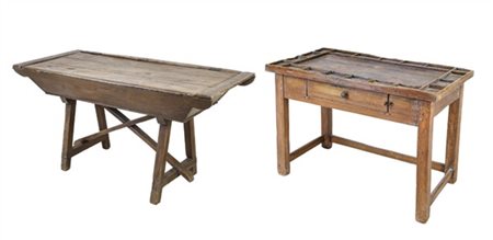 Lotto composto da una madia ed un tavolino da lavoro ad un cassetto con piano a