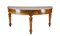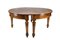 Coppia di mezzi tavoli in noce con gambe tornite e piani lastronati in radica e