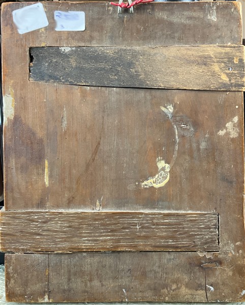 Arte russa, secolo XIX. Icona a tempera su tavola raffigurante da sinistra Sant'Anna, Sant'Andrea e Sant'Eugenia con Cristo benedicente tra nuvole al centro in alto (cm 22x18) (difetti)