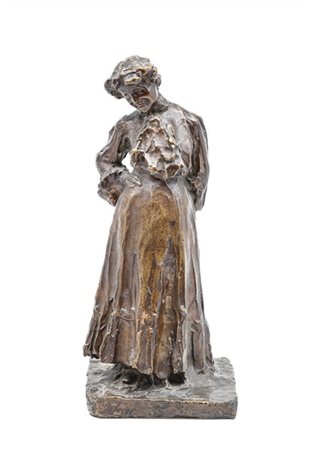 Francesco Pasanisi "La signorina" scultura in bronzo (cm 43x14x14) firmata all