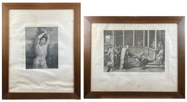 Lotto composto da un'incisione raffigurante "S. Pietro che risana lo storpio" (cm 54x69), da un dipinto di Raffaello Sanzio, e una litografia raffigurante "S. Sebastiano" (cm 70x53), da un dipinto di Guido Reni