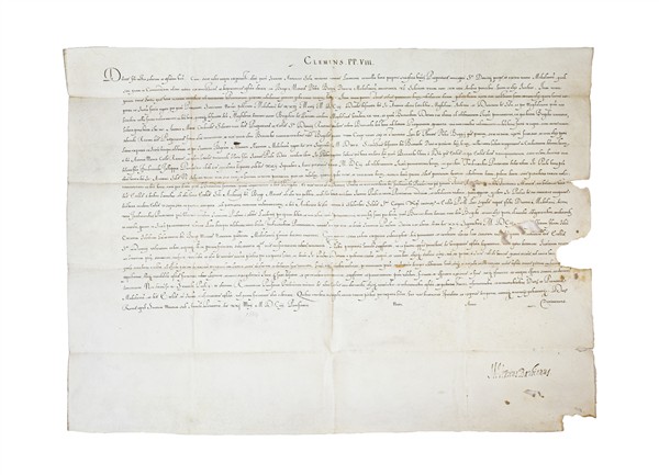 Bolla Papale di Clemente VIII, manoscritta su carta (cm 41x56 ca.) (difetti e mancanze)
