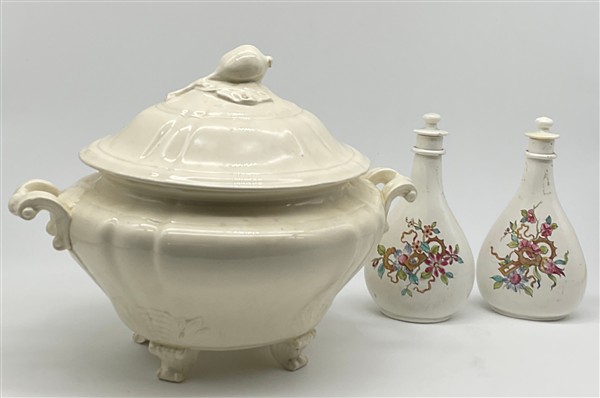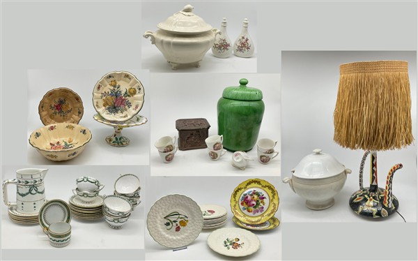 Due cartoni contenenti numerosi oggetti di ceramica principalmente per la tavola, di epoche e manifatture differenti (difetti e mancanze)