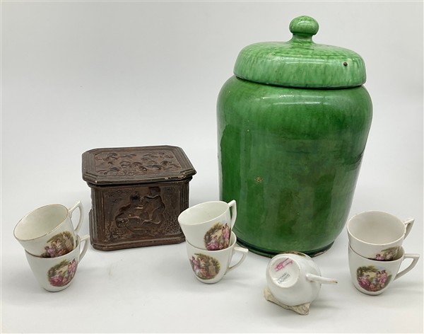 Due cartoni contenenti numerosi oggetti di ceramica principalmente per la tavol