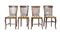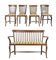Lotto composto da quattro sedie e un divanetto a tre posti in rovere con schien