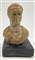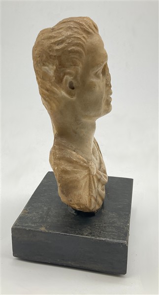 Antico busto virile togato in marmo scolpito su base in marmo nero (h cm 17,5)