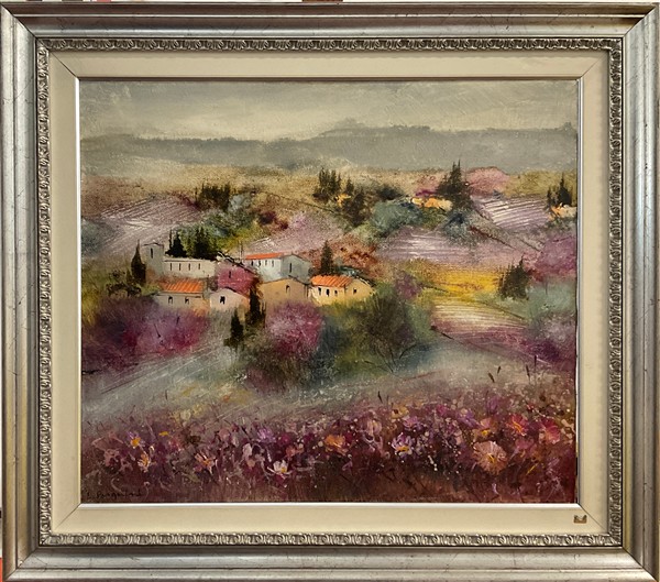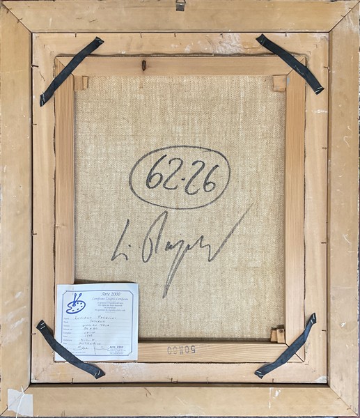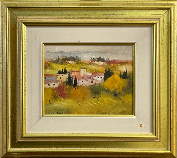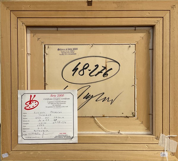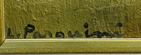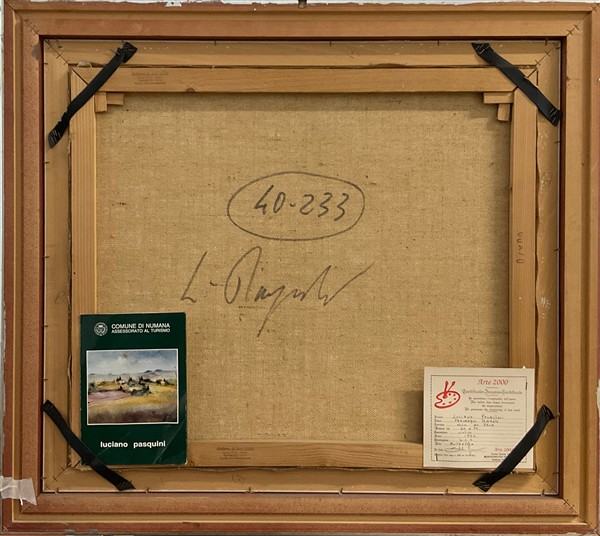 Luciano Pasquini Lotto composto da tre oli su tela raffiguranti paesaggi con cas