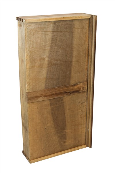 Cassettone in noce e radica con fronte a quattro diversi cassetti e montanti de
