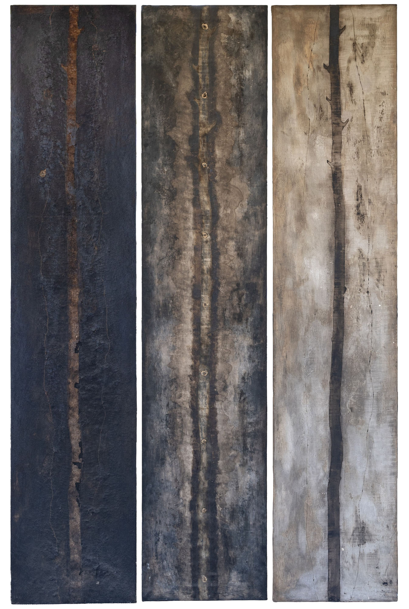 SALVATORE ASTORE(1957)Senza titoloTecnica mista e applicazioni su tela, tritticoDimensioni di ciascuna tela: 285 x 60 cmPROVENIENZA:Collezione privata. Milano