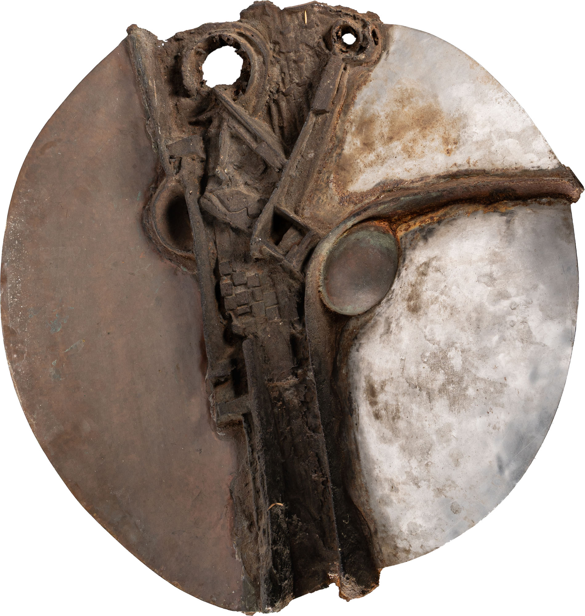 LUCIANO CESCHIA(1926 - 1991)Gong del pavone1963Ghisa con acciaio inox e rameDiametro 65 cmFirma e data incise al retroPROVENIENZA:Atelier dell'artistaCollezione privata, MilanoESPOSIZIONI:1 - 30 giugno 1968, Ceschia. Sculture e disegni, Palazzo Kechler, UdineBIBLIOGRAFIA:AA.VV., Luciano Ceschia. Sculture e disegni 1943-68, Del Bianco editore, Udine, 1968, p. 75 (ill.)